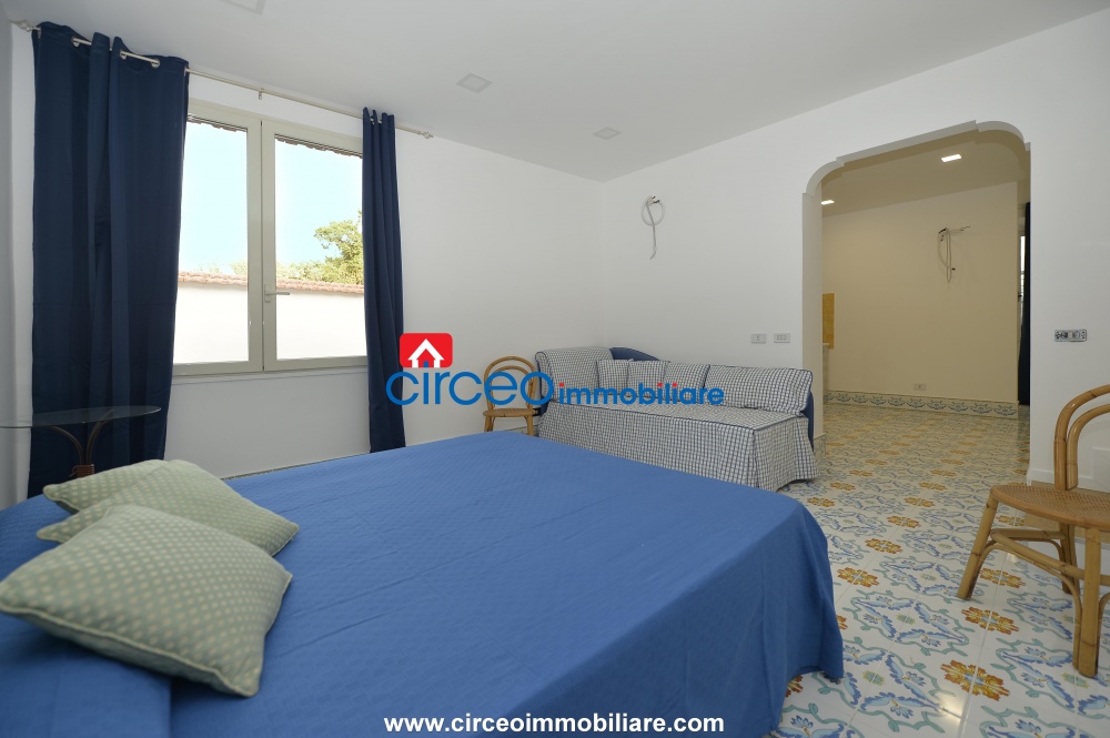 San Felice Circeo - Zona Mezzacosta - Proponiamo in locazione un appartamento piano terra di circa mq. 50,00 con un giardino mattonato di circa mq. 30,00 fuori le mura del Centro Storico del Circeo. L'appartamento è un open space composto da zona giorno con angolo cottura e zona notte con letto matrimoniale e divano letto, bagno con doccia e terrazza panoramica al primo piano. L'immobile è stato appena ristrutturato con materiali di prima scelta e con raffinato gusto. L'ubicazione della zona giorno permettono un ottimo utilizzo della zona pavimentata esterna per colazioni, pranzi o cene all'aperto. L'appartamento è dotato di lavatrice. Posti letto n°3. Posti auto n°1. Distanza dal mare circa ml. 750.